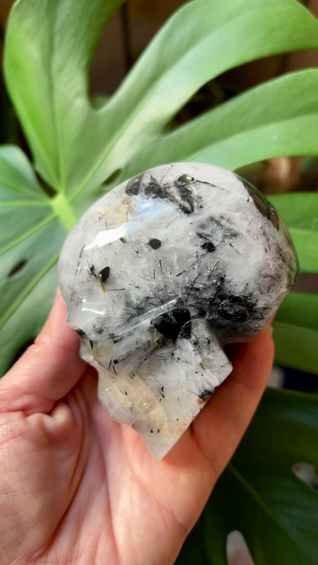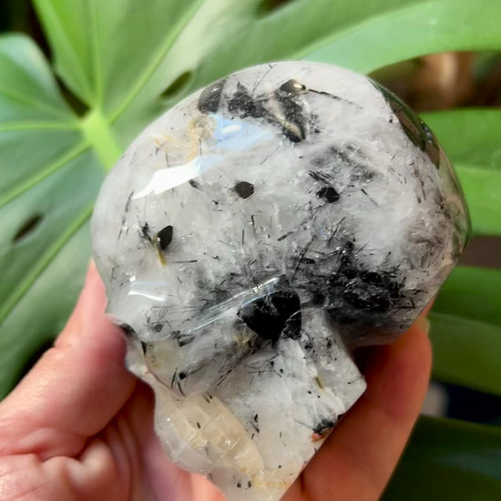 Black Tourmaline in Quartz Skull Carving