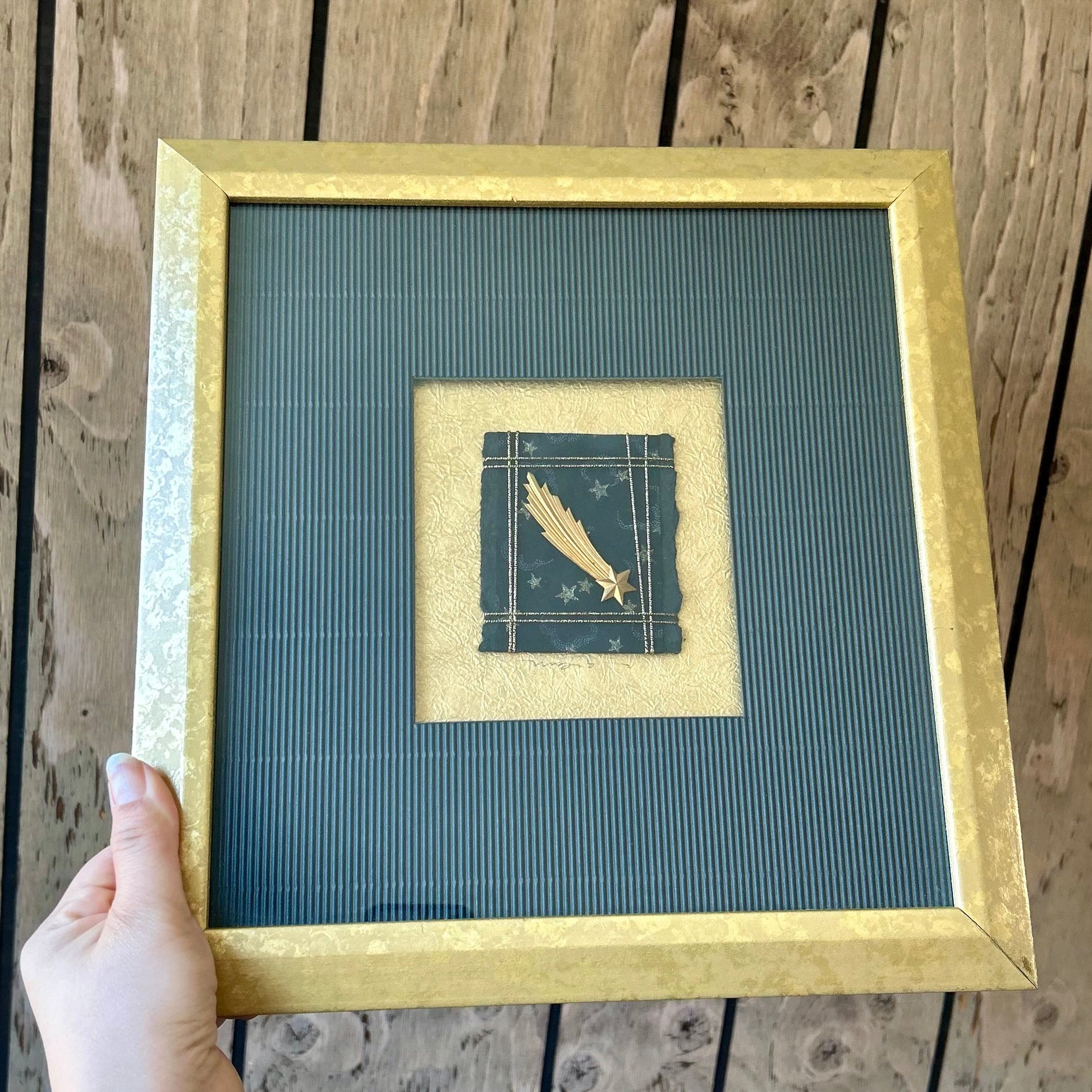 This is an original Nina Matsuno framed shooting star from her Celestial series. It’s a hand made and original design and has been signed by the artist.