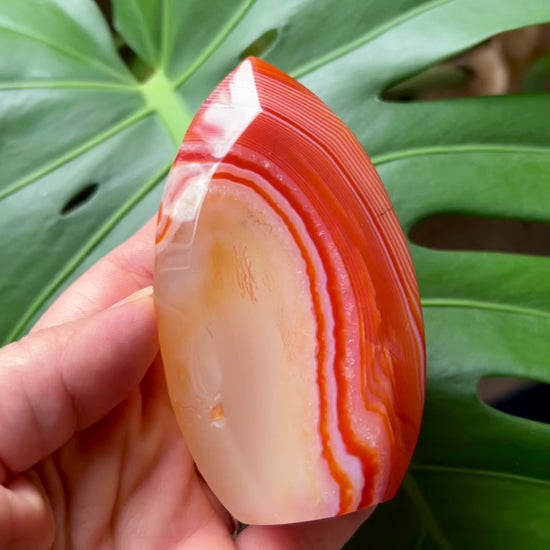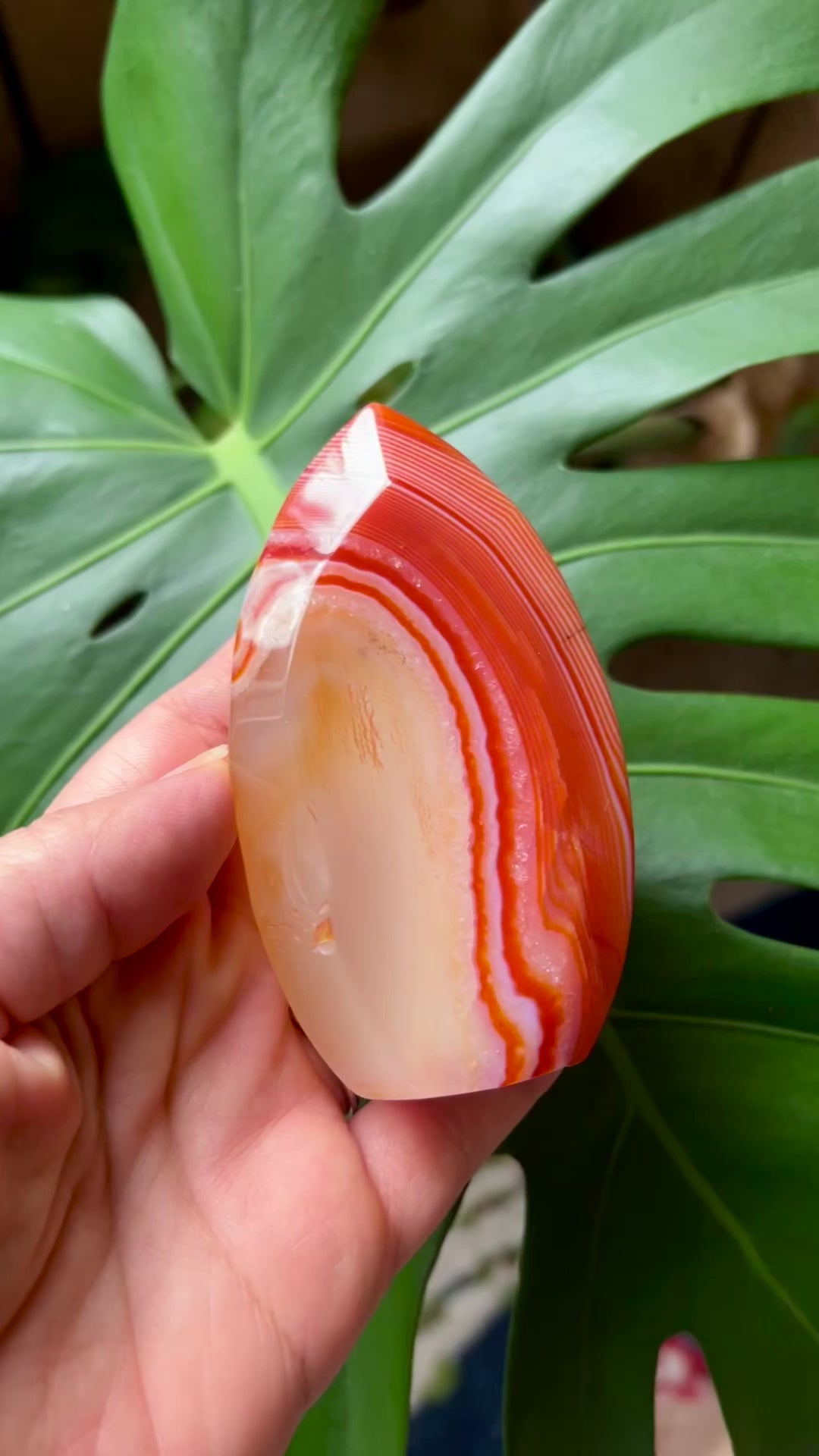 Beautiful natural sardonyx agate freeform with Quartz. This piece stands 3.75 inches tall, 2.1 inches wide and .75 inches thick, weighing 7.1 oz.