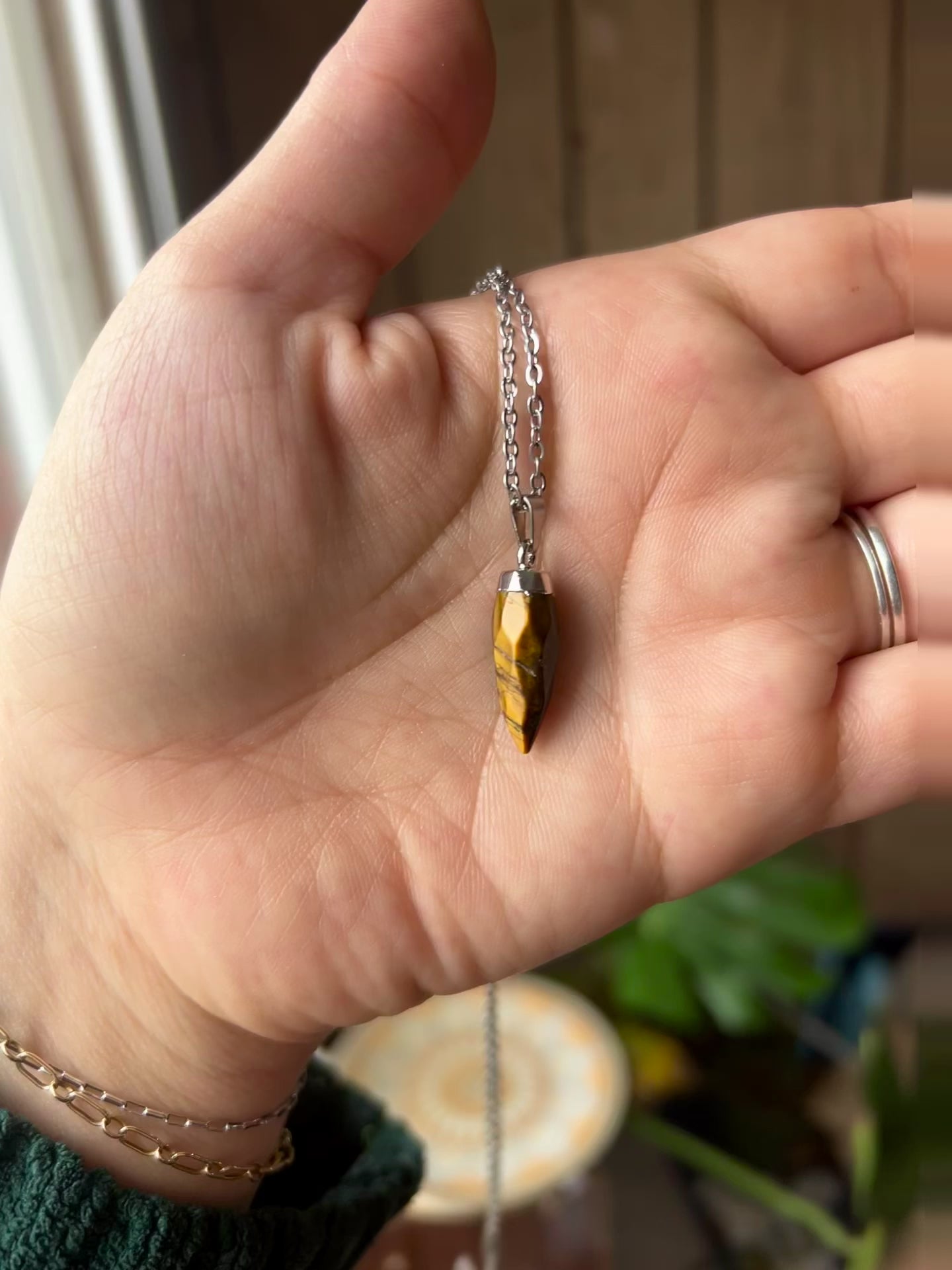 Natural Tiger's Eye stone bullet pendant necklace. Each pendant comes with a stainless steel necklace, length your choice.