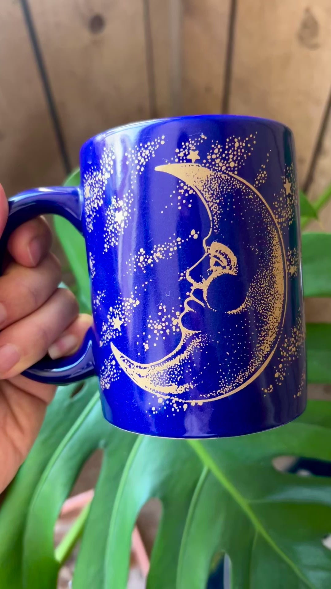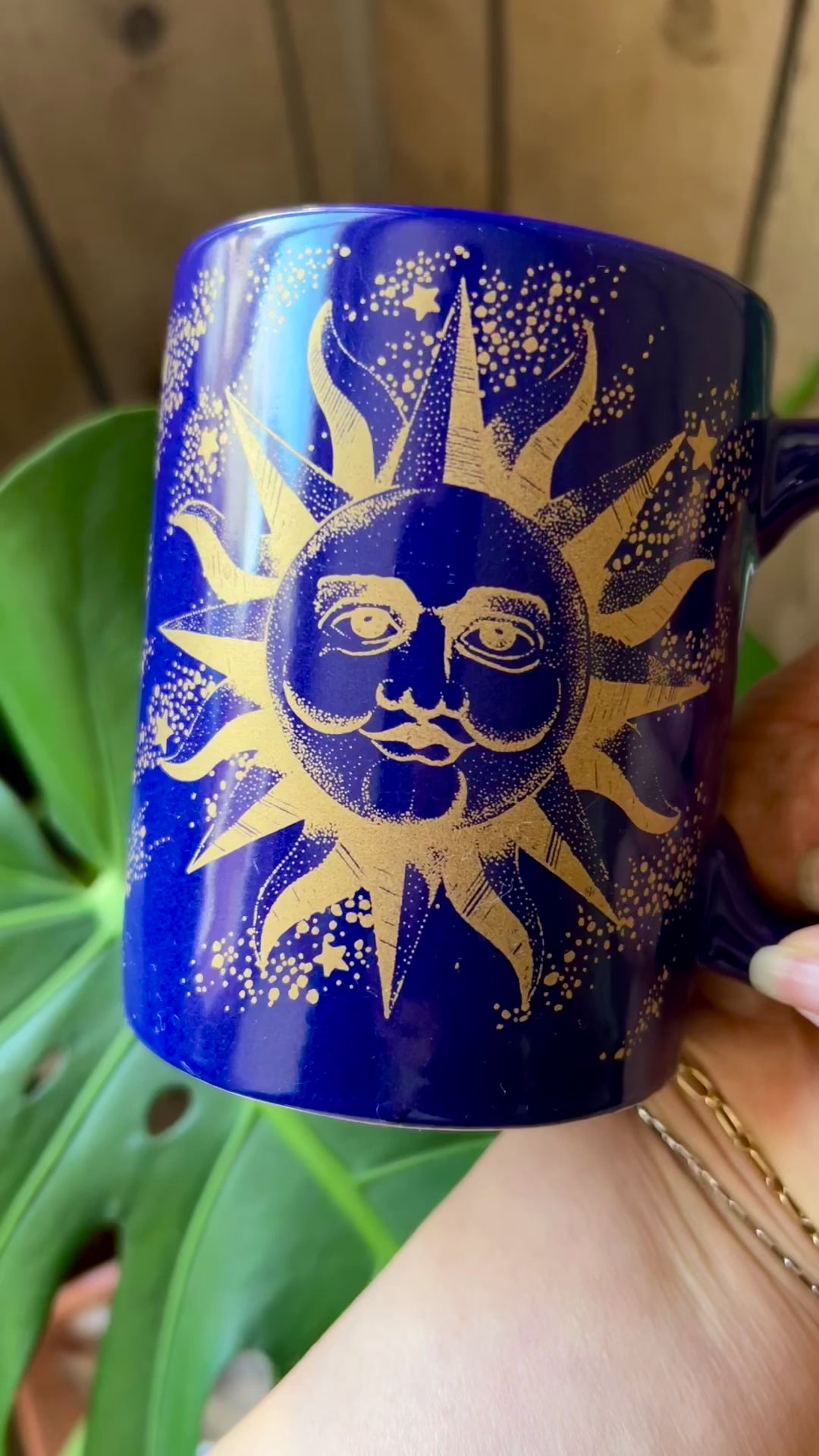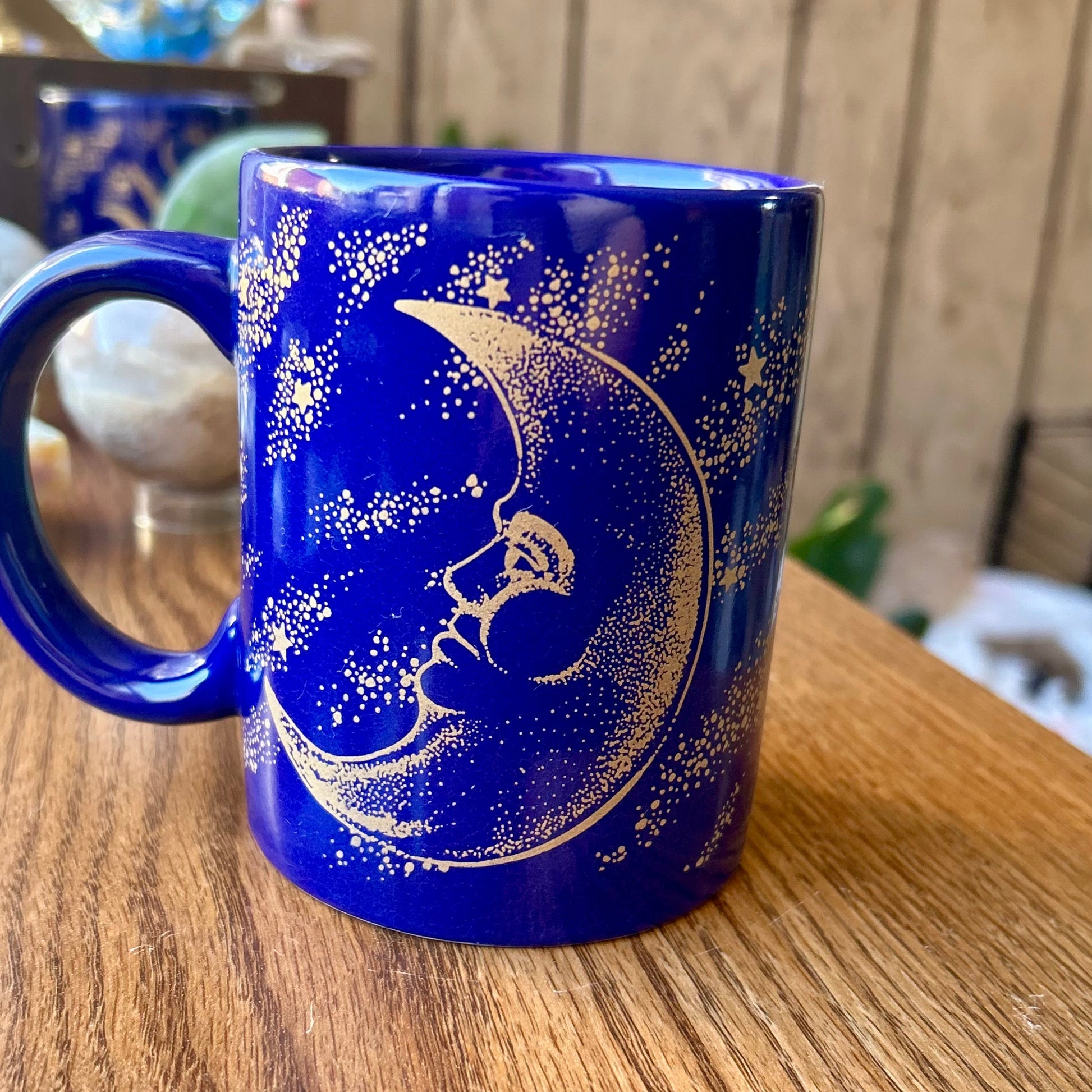 Vintage set of Sanyei celestial sun and moon mugs from the 90s. Made out ceramic, these are larger mugs that stand 4.25 inches tall holds around 12 oz.